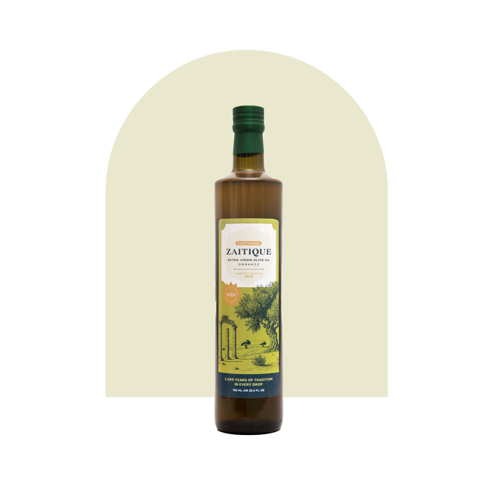 Zaitique Carthage is a premium USDA Organic extra virgin olive oil, cold-pressed within hours of harvest from hand-picked olives grown in Tunisia’s sun-drenched groves. Our ancient trees are dry-farmed—no irrigation, just seasonal rain and deep roots—producing an oil that’s robust, nuanced, and full of bold, green flavor. Bottled in dark, UV-resistant glass to preserve its integrity, Zaitique offers a smooth, full-bodied finish and a peppery kick that signals exceptional freshness and high polyphenol content.